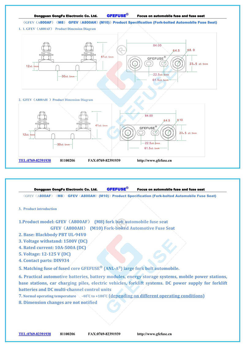 東莞市貢福電子有限公司專業制造銷售太陽能光伏熔斷器、新能源車用保險絲、微型保險絲、叉栓保險絲、汽車保險絲、高壓保險絲、貼片保險絲、陶瓷保險絲、汽車保險絲座、汽車熔斷器、突跳式溫控器、汽車過載保護器,保險絲座,汽車插片保險絲。插片保險絲座,叉栓保險絲座,叉栓保險絲盒,螺栓保險絲,螺栓保險絲座,低壓熔斷器.直流熔斷器,直流保險絲,車用保險絲,車用保險絲座等。產品通過UL CE CQC TUV REACH等認證。客戶遍布廣東、江蘇、東莞、上海等全國各地。
