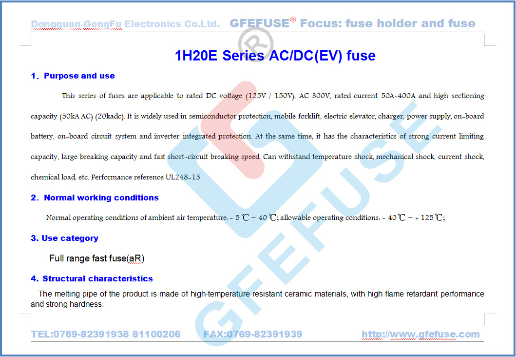 1H20E快速熔斷器(50A-400A)250V300V